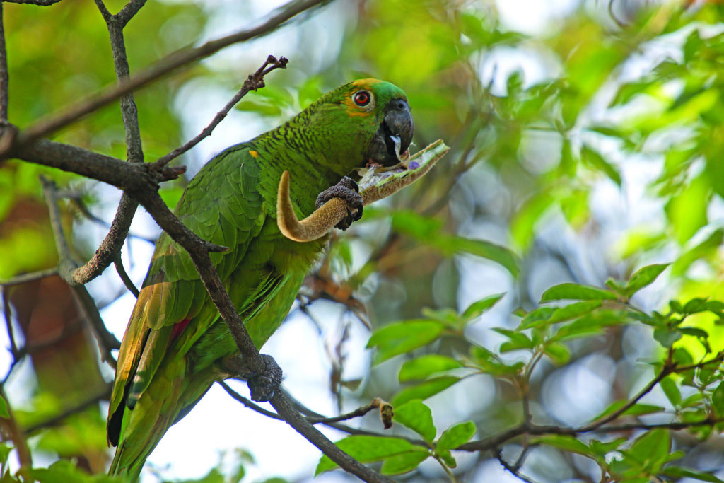 verdadeiro (Amazona aestiva), que adora as sementes da vagem