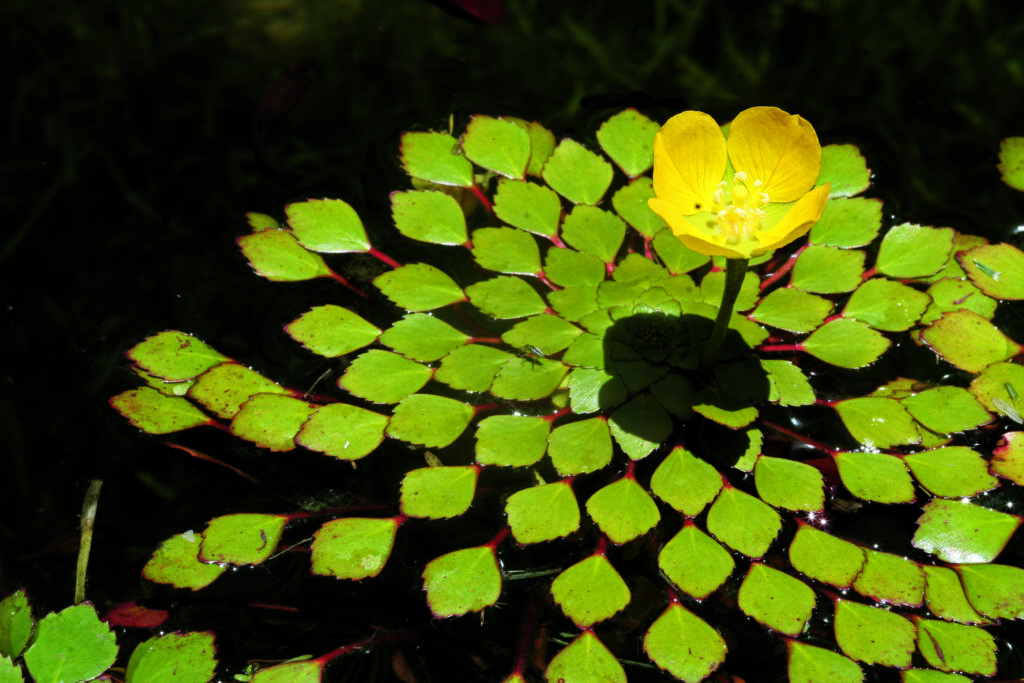 Essa planta, que é nativa do Brasil, é de uma delicadeza realmente notável. Enraíza-se no lodo, mas o conjunto de folhas permanece flutuando, em um arranjo concêntrico, que lembra um mosaico. As flores amarelas também surgem flutuando dentro desse mosaico, normalmente uma a uma.