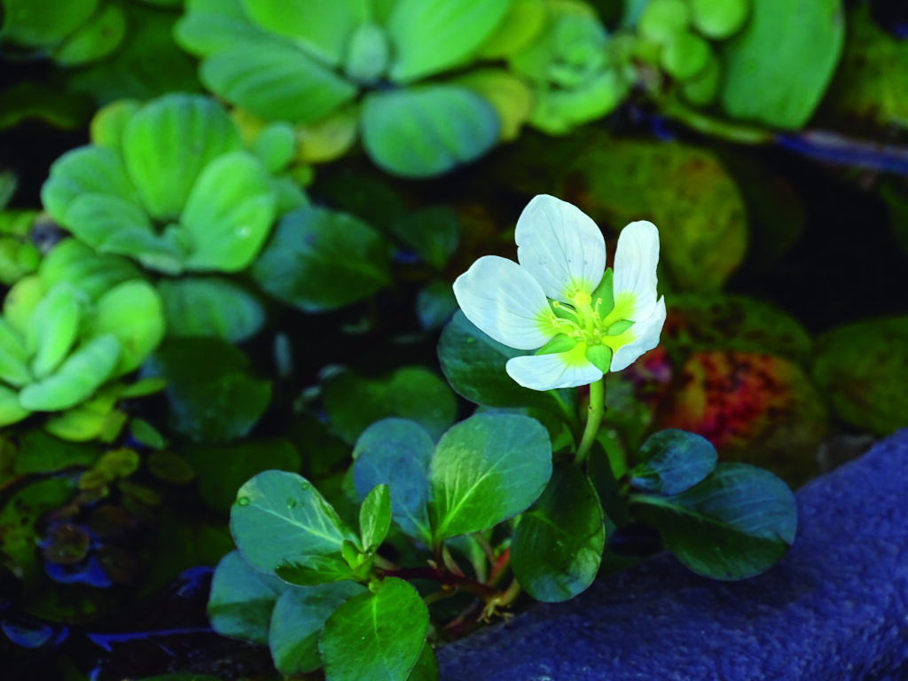 Essa é uma das plantas flutuantes mais utilizadas em jardins aquáticos. Sua multiplicação é rápida, já que pequenas mudinhas surgem de estolões que despontam da base da planta. As folhas verde-claras e pilosas dão um visual interessante à superfície da água. Além disso, as longas raízes submersas oferecem abrigo aos peixes menores