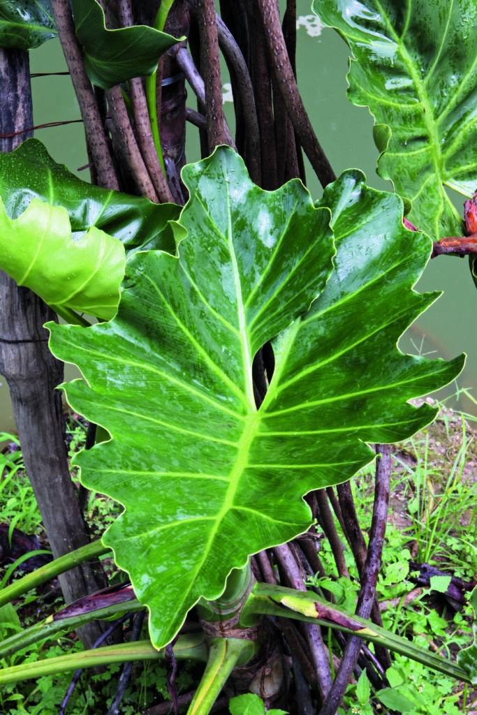 Como esse Thaumatophyllum bipinnatifidum, estão entre as plantas que ficam especialmente felizes à margem de jardins aquáticos. Sempre que podem, eles mandam uma ou outra raiz adventícia para dentro do laguinho.